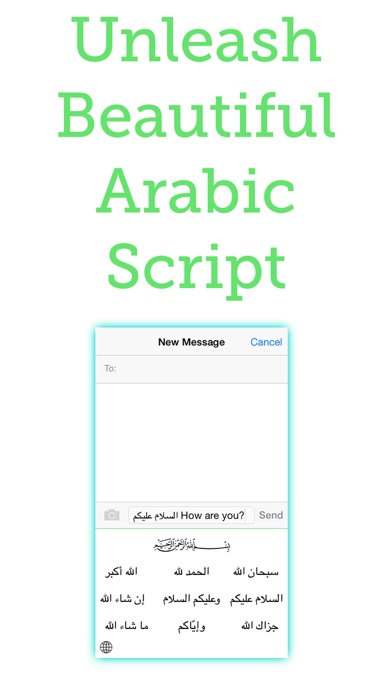 Why say AA or Salaam when you can say السلام عليكم? Enhance your conversations with beautiful Arabic script of common Islamic phrases built right into your iPhone's iOS8 keyboard! All brought to you in an app that's just as simple, elegant and gorgeous as the language itself. Includes the following phrases: سبحان الله الحمد لله الله أكبر السلام عليكم وعليكم السلام إن شاء الله جزاك اللهُ خيرا وإيّاكم ما شاء الله ۞۩ Arabic Numbers Optimized for all iOS devices and screen sizes!