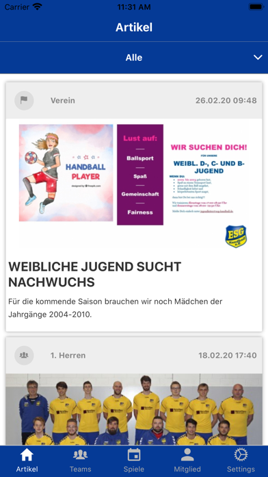 Mit der TeamSports2 App der Eschweiler SG bleibst du immer auf dem Laufenden. Ergebnisse und Tabellen hast du immer brandaktuell auf deinem iPhone, ebenso wie Berichte und Mannschaftskader. Mit Push Benachrichtigungen bist du immer als Erstes informiert, wie die Teams der ESG gespielt haben.
