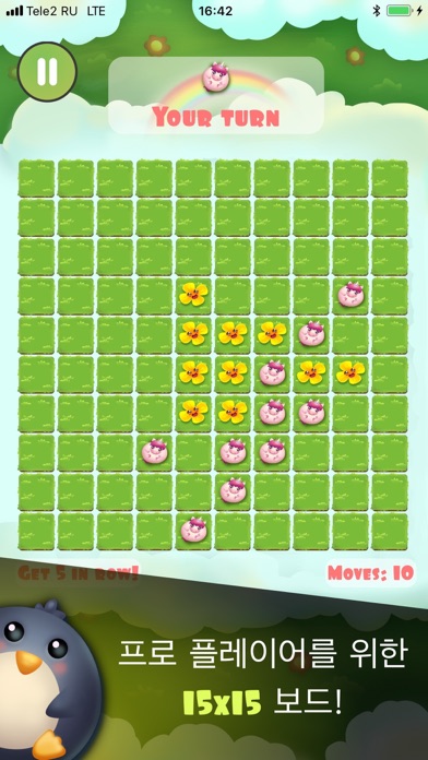 2인용을 위한 엄청나게 인기가 있는 게임입니다! 단기간 게임 및 편리하고 매력적인 게임플레이! 종이와 연필 없이 게임을 합니다! 자신의 재빠름과 논리적 사고력을 확인해 보세요! 이 오래된 학교 게임을 새로운 각도에서 보는 것: - 6가지의 재미있는 테마; - 귀여운 캐릭터는 모든 사람들이 좋아할 겁니다. 다양한 게임 모드를 해 보세요: - 첫번째 것은 보통 3x3보드! - 두번째 것은 모험가를 위한 10x10보드! - 세번째 것은 매우 똑똑한 사람들을 위한 15x15보드! AI 플레이어나 다른 플레이어와 게임을 합니다! 다음 시도를 최근에 했던 것 보다 더 좋게 합니다. 게임을 이기는 것 외에는 할 일이 없습니다!