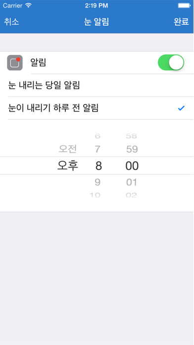 눈이 올까요? 알림을 받으세요. 이제 다시는 갑작스러운 눈 때문에 놀라지 마세요. 이 앱이 작동하는 방식을 좋아하게 될겁니다.
