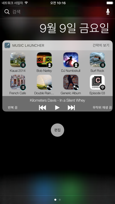 유명한 Launcher 앱/위젯의 개발사 Cromulent Labs가 선사하는 Music Launcher는 즐겨찾는 음악을 간편히 관리할 수 있는 최신의 iOS 8용 '필수' 앱입니다. 이 앱을 설치하면 iPhone 또는 iPad의 알림 센터에 추가할 수 있는 새로운 iOS 8 오늘 위젯이 생성되므로 언제든 화면을 한 번만 슬라이드해서 이용할 수 있습니다! 좋아하는 재생목록, 노래, 앨범, 팟캐스트, 오디오북을 Music Launcher 위젯에 넣고 알림 센터에서 바로 재생하세요. Dock 또는 홈 화면과 달리 앱, 앱 폴더 또는 잠금 화면 안에 있어도 알림 센터는 화면을 한 번 슬라이드해서 언제든 접근할 수 있습니다. 특징: - 위젯에서 일시 중지/건너뛰기 및 반복/무작위 재생을 할 수 있는 간편한 음악 컨트롤 (Pro 버전만 해당) - 위젯에서 현재 재생 중인 곡 정보 표시 (Pro 버전만 해당) - 좋아하는 음악에 대해 위젯을 설정하는 혁신적인 음악 위젯 자동 설정. - 놀랍도록 간편한 위젯 설정 및 편집. 몇 번만 누르면 완료됩니다. - 처음 설정 후 트랙 목록을 간편히 편집 및 재정렬. - 원하는 대로 각 위젯을 설정할 수 있는 다양한 아이콘. 이 모든 것이 무료로 제공됩니다! Pro 버전으로 업그레이드 (App 내 구입)하면 3개 이상의 위젯 모음을 사용하고 위젯에 음악 컨트롤을 추가할 수 있습니다. 오늘 Pro 버전을 구입해서 추가적인 앱 개발을 지원해주십시오. 이 앱과 위젯은 내장된 음악 앱을 통해 재생 가능한, iPhone 또는 iPad 또는 iTunes Match의 음악만 지원합니다. Spotify, Rdio, Pandora, last.fm과 같은 타사의 음악 서비스와는 통합되지 않습니다. 귀하의 의견을 환영합니다. 질문, 의견 또는 제안이 있으실 경우 앱의 설정 -> 피드백에서 또는 다음 피드백 페이지에서 저희에게 연락해주십시오. http://al.cromulentlabs.com/feedback/