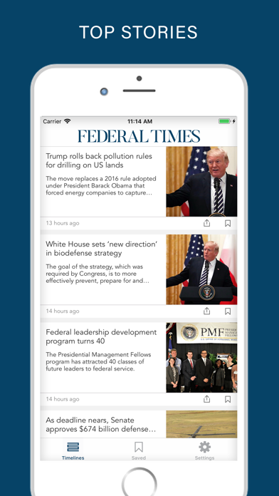 Stay on top of the rapid changes impacting today's federal managers and the business issues impacting federal careers. Government managers rely on the Federal Times app for news and information about managing their staffs, the latest technology, and financial and career decisions. FEATURES • Easily share articles with friends or colleagues with the tap of a button. • Save your favorite articles so you can revisit them later. Access your saved articles any time you want. PRIVACY POLICY: https://www.federaltimes.com/privacy/ TERMS OF USE: http://sightlinemediagroup.com/terms-of-service/