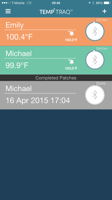 TempTraq® is a wearable, Bluetooth continuous temperature monitor in the form of a soft, comfortable, single use patch. The patch senses, records and transmits body temperature for 24 or 48 hours via Bluetooth® 4.0 (LE) to an iPhone®, iPad®, or iPod touch® with Bluetooth 4.0 capability running the TempTraq app. With TempTraq Connect, users may share local patch data in real time with other users running the TempTraq Connect app with an internet connection. The app requires the TempTraq patch to function. TempTraq is a Class II FDA cleared medical device and is only available for sale in the US. The TempTraq app is only available for download in the US. TempTraq allows a child to rest when they are ill with an elevated temperature. There is no need to disturb the child to take a temperature measurement so the child can rest and the parents can be confident knowing their child's temperature. TempTraq Patch The TempTraq patch is designed to be worn with the sensor in the armpit area measuring axillary temperature. TempTraq measures under-the-arm "axillary" temperature and this is converted to an oral temperature which is displayed in the TempTraq app. TempTraq App The TempTraq app provides an intuitive and easy to use interface to view the temperature data transmitted from the patch. o Displays both current and historical temperature data transmitted from the patch o Monitors multiple patches assigned to multiple children o Enables sharing of patch data with other TempTraq Connect users o Uses color to indicate temperature levels o Green – less than 100.4° F o Orange – equal to or greater than 100.4° F o Red – temperature equal to or greater than a user defined alert temperature o Displays temperature in either C or F o Generates an alert on the smart device when the temperature is equal to or greater than a user defined alert temperature o Provides temperature history over the 24 or 48 hour use period of the patch in both graphical and data table views o Enables the user to enter notes for medication, baths, feeding and other events o Enables temperature data to be exported via e-mail as a .csv file The TempTraq app is compatible with iPod touch, iPhone and iPad with Bluetooth 4.0 (LE) capability, running iOS 12.0 or later.