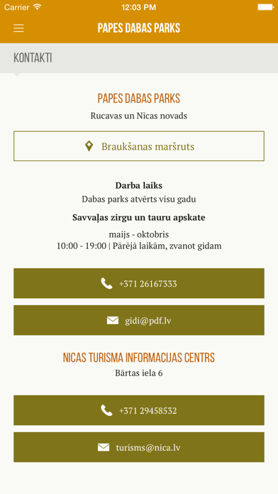 LATVISKI: Šī bezmaksas aplikācija sniedz izsmeļošu informāciju dabas parka “Pape” apmeklētājiem. Aplikācijā pieejami apskates objektu apraksti, dabas taku maršruti, visas aktīvās atpūtas iespējas, naktsmītņu piedāvājums, kā arī interaktīva karte, kas Tev ļaus ērti un parocīgi izplānot savu maršrutu. Tāpat aplikācijā atrodama kontaktinformācija, darba laiki. ENGLISH: This free app provides comprehensive information for the visitors of Nature Park Pape. The app offers descriptions of all the points of interest, nature trails, outdoor leisure activities, accommodation possibilities, as well as convenient interactive map that will let you plan your route. Also find contact information and opening hours.