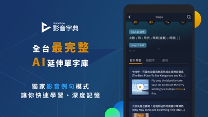 「VoiceTube 影音字典」是一款可離線搜尋的英漢字典,除了有單字發音、時態說明,更透過AI 深度運算延伸單字,結合 VoiceTube 獨有的「影音例句」功能,完整解析單字使用方式,讓你快速學習、深度記憶! 【 學習特色 】 ► 每日一字,專家解析 - 天天更新的精選單字,搭配影片瞭解語境應用。 - 由專業編輯解析的單字重點,教你道地用法。 ► AI 數據運算,延伸單字庫 - 藉由 AI 運算,推薦您同類型的延伸學習單字。 - 深度機器學習,通過大數據提供您建議學習的單字。 ► 影音例句,深度記憶 - 豐富影片類型搭配中英翻譯字幕,完整理解單字使用方式。 - 透過反覆聽說,徹底吸收各式情境的用法。 ► 音標發音,單字練習 - 提供美式與英式的發音與音標,熟悉精準的發聲。 - 離線也能使用發音功能,讓您學習不間斷。 ► 收藏單字,一字不漏 - 在 VoiceTube 網站與 App,查詢過的單字一併收錄。 - 在 HERO 課程中 ,查詢與收藏過的單字一併收錄。 ► 跨裝置學習帶著走 - 在電腦上安裝影音字典 Chrome Extension,將一併同步查詢過的單字。 - VoiceTube 全平台不分產品線與裝置,單字全部連動至影音字典App中。