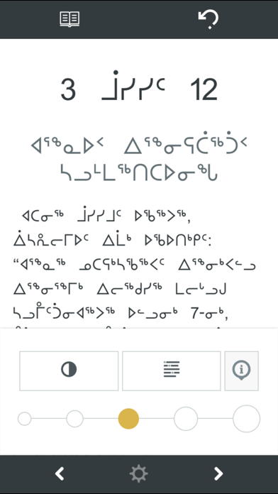 Inuktitut Bible Reader is a beautiful way to read the Bible in Inuktitut on your iPhone or iPad that puts reading quality first. It offers a distraction free reading mode that allows you to focus on the text alone and a simple interface for browsing and reading the Bible. Quickly switch to night mode with two taps on the screen or change the font size to match your reading preference. Features: - Increase/Decrease Font Size - Night Mode - Distraction Free Mode - Quickly browse to any chapter or verse