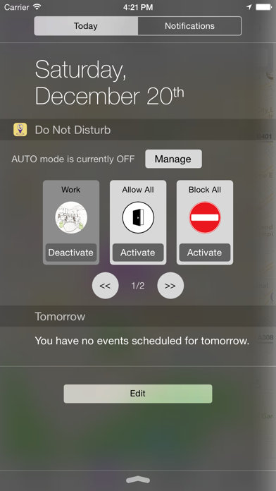 Welcome to Do Not Disturb on steroids! If you want Do Not Disturb to do more than just silence calls from a single pre-defined group of contacts, this is the app for you! Here's the list of things you can do with this app - 1. Classify your contacts into groups for easier management. Create as many groups as you want. Add a contact to multiple groups as needed. 2. Create profiles (such as work, home, vacation) to allow / disallow one or more groups. This is like creating multiple Do Not Disturb settings. 3. Activate profiles with one tap anytime and let the app do the rest i.e. silence calls from contacts which are not allowed as per the profile. 4. Or tag profiles to locations. And let the AUTO mode in the app activate or de-activate the profile to silence calls as you enter or exit the location. 5. The app comes with a widget, which lets you manage AUTO mode or activate / de-activate profiles conveniently.