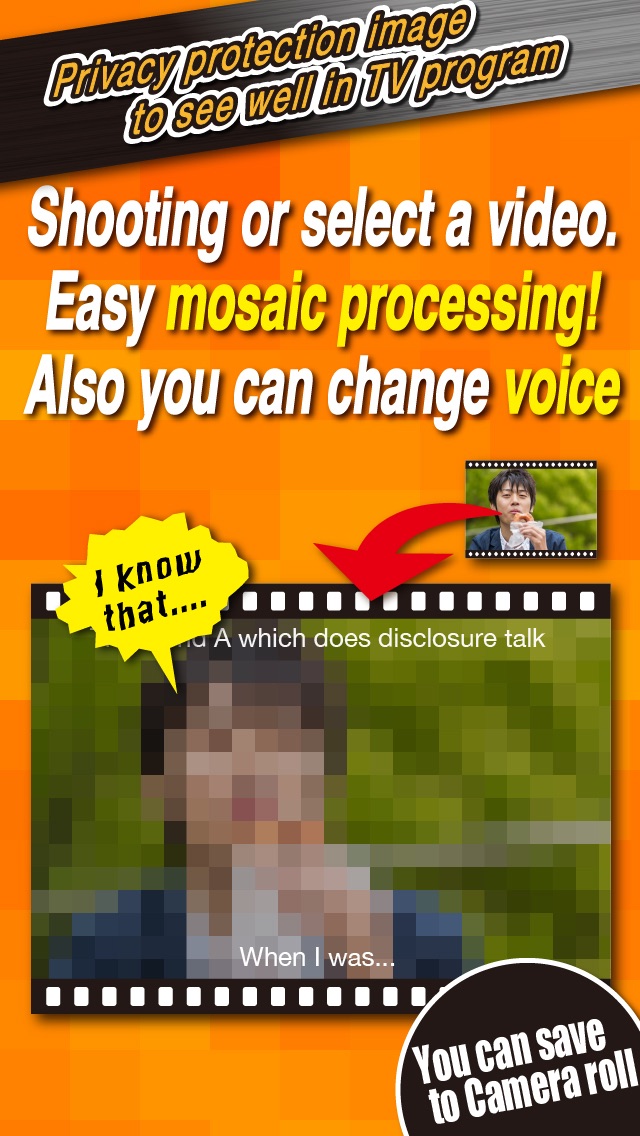 You can create a simple to privacy protection movie to see well in TV program. Shooting videos within one minute , or by simply selecting from the camera roll , the video will be created automatically! * You can also be changing the contents manually below . - Voice of height - It takes a mosaic condition - The darkness of the screen - Up and down ticker The finished video to post to Facebook, etc., let's laugh friends!! * This app is a joke app. Do not use in criminal acts.