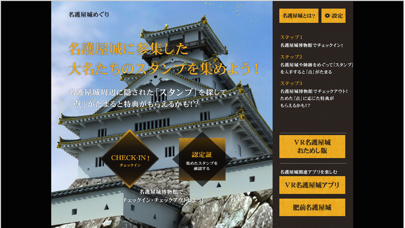 名護屋城巡り【佐賀県立名護屋城博物館公式アプリ】は、名護屋城跡周辺で楽しめるスタンプラリーアプリです。 VR名護屋城のおためしや名護屋城跡のご案内を見る事も出来ます。 ■スタンプラリーモード 名護屋城跡周辺を巡り、スタンプ(大名の家紋)を集めましょう。 集めたスタンプは、佐賀県立名護屋城博物館で認定書と交換できます。 点数に応じて、特典があるかも。 ■おためしVR VR名護屋城の一部機能が楽しめます。 ■名護屋城ガイド 特別史跡名護屋城跡のパンフレットが見られます。 ■チェックイン機能 佐賀県立名護屋城博物館でチェックインして、スタンプラリーを始めます。 チェックアウトをして得点を貯められます。 ※制作:佐賀県立名護屋城博物館