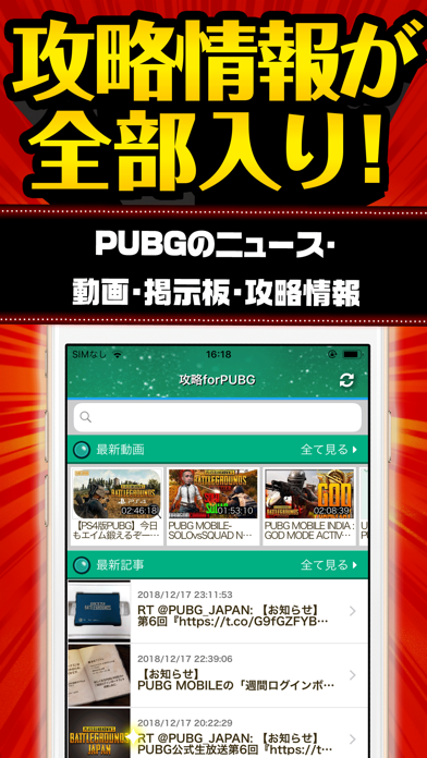 PUBGに関する情報をまとめてお届け! 最新ニュース、攻略まとめ、実況動画、掲示板をこのアプリ1つで全て網羅! 記事・動画・掲示板のタイプ別にメニューが分けられているので、欲しい情報が一目で分かる! タブを自由に選択・並べ替えできるカスタマイズ機能付き! メニューごとに人気・急上昇ランキング機能付き! ◆◆アプリの特徴◆◆ ・動画を続けて再生できる連続再生機能付き ・お気に入り機能(アプリ内フォルダに保存) ・シャッフル、リピート再生10秒送り、10秒戻し機能付き ・スリープタイマー機能付き ・新着、急上昇、人気ランキング検索機能付き ・履歴、お気に入り内シャッフル再生対応 掲示板の書き込みでは、皆さまに安心してご利用いただくためにも、誹謗中傷や迷惑行為、RMT行為はお止め下さい。 最強攻略 for PUBGはPUBGの非公式アプリです。運営会社とは一切関係ありません。