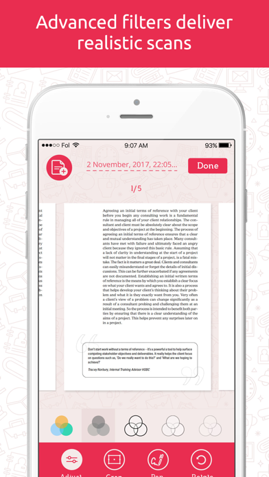 Turn your iPhone into fast and easy to use scanner. It’s never been so easy to Scan, put Signature and Email multipage documents into PDF or JPEG. You can scan any document in seconds include business cards, receipts, notes, passports, whiteboards and even multiple page documents. Just take picture, crop, choose preferred scanner effect and you’re done. Here are the features that awaits you: - Put your signature on any document easily - Anti shake technology while taking picture to get more detailed image - Automatic image edge detection - Smart image cropping - Image perspective auto correction - Several image effects - Save documents inside app or export in Camera Roll - Create multipage documents and email into PDF or JPEG - Automatic upload of documents to iCloud - Email optimized image size for instant attachment delivery Download Scanner for iPhone right now and get all those features for free. We are working constantly to improve app performance and user experience. To get your feedbacks easily & make the process convenient, you can send us your questions & suggestions directly from the app "Settings”. Your suggestions are valuable for us! If you like Scanner for iPhone, don’t forget to rate us on AppStore! ;) Happy scanning!