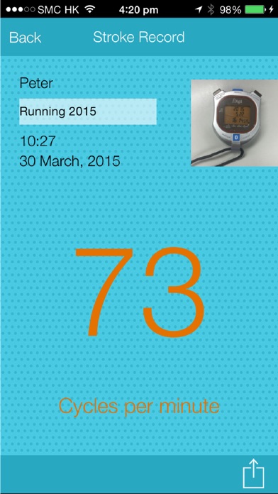 Bluetooth® Stopwatch The BLE Stopwatch is the perfect gadgets for the coaches with Stopwatch, Timer, Pacer and Stroke measurment function. After uploaded the Stopwatch and Stroke records from devices, The user can review the records on Smartphone with filters and export records to a file for further analysis to improve the performance of the exercise. The pacer momories is stored in the smartphone and download to the Stopwatch when using • Supports devices running iOS 7.1 or above with Bluetooth® Smart Ready technology • Upload the Stopwatch and Stroke records and export records to a file • Assign the player namd and event name for each record • Search the records by player name, period or event name • Programmable Pacer Mode - - Up to 10 memories with different time period and different pacer can be stored • Reports devices battery level • Works with iPad Note: The Stopwatch app must work with dedicated hardware. Please contact your local dealer if necessary.